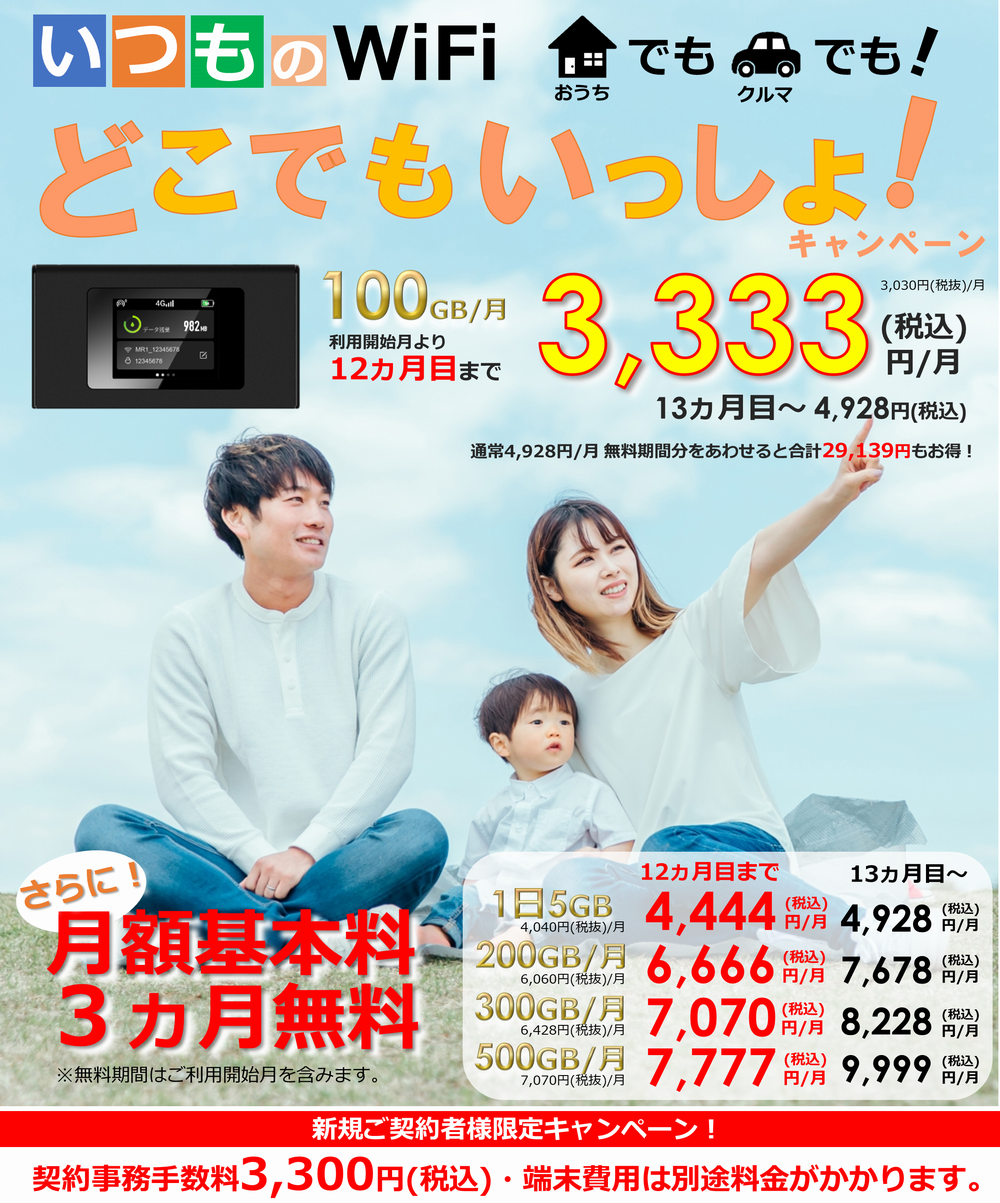- 100GB・200GB・300GB・1日5GBコースへ変更が可能です。コース変更は申請月の翌月1日から適用となります。コース変更には、コース変更手数料3,300円(税込)が発生致します。